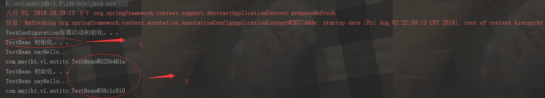 System.out.println("TestConfiguration容器启动初始化。。。");